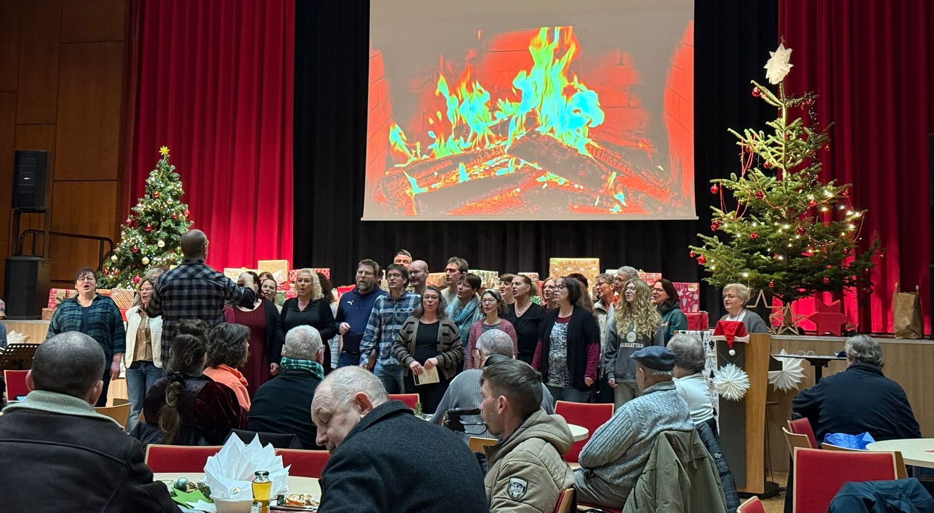 Auf Einladung der Diakonie Soziale Dienste folgten 200 Menschen zur Weihnachtsfeier der Diakonischen Wohnungslosenhilfe. Für viele der teilnehmenden Menschen war dieses Mittagessen ein besonderer Moment, den sie gemeinsam in Wärme und Gemeinschaft verbringen konnten.