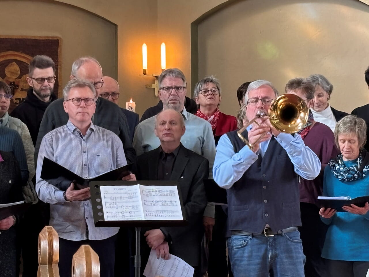 Mit strahlenden Augen – so genoss Almuth Schwichow mit den anderen Gottesdienstbesuchern die Begleitung durch den Chor „Wegweiser“ unter der Leitung Jochen Schnutz, in dem sie direkt nach der Predigt selbst mitsang. Für den richtigen Takt im Kirchenchor sorgte Anastasiia Schneider. Der Posaunenchor unter der Leitung von Sabrina Seelbach verabschiedete seine Pfarrerin mit den Beiträgen Highland Cathedral und dem Sound aus dem Film Fluch der Karibik klanggewaltig.