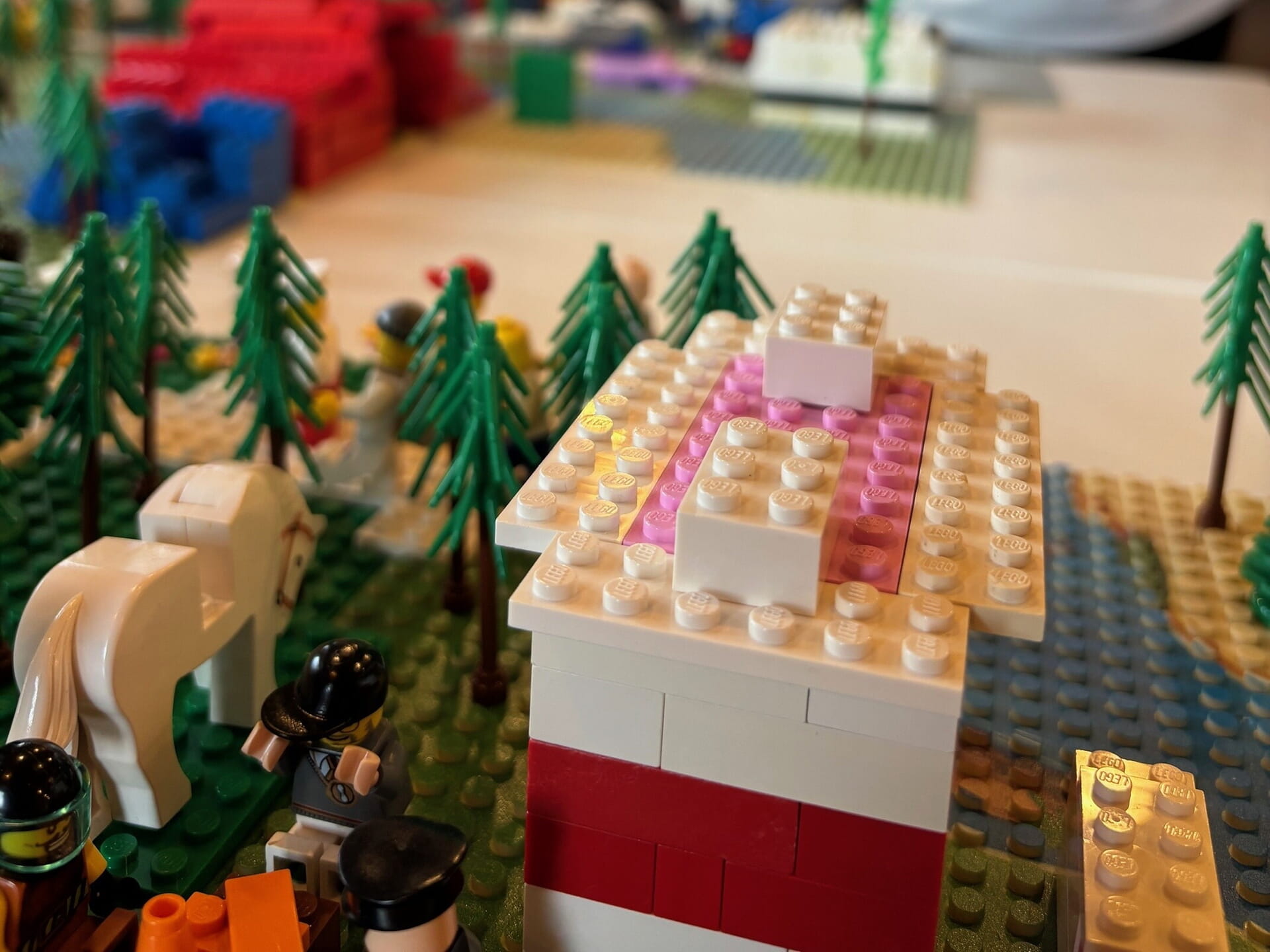„Da hatten wir das Lego bereits für die Gruppe aus Müsen vorbereitet“, so Silke Grübener. Die Einladung mit Lego-Steinen zu basteln, brauchte die Chefin des Abenteuerdorfs nicht zweimal aussprechen.